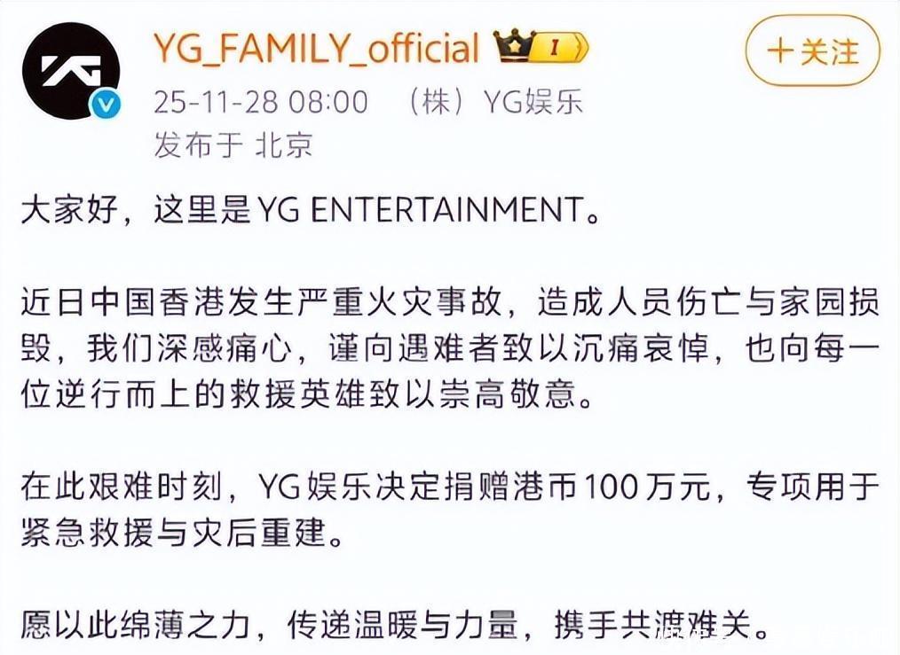 11日清晨,一则令人心碎的消息传遍全国:香港新界大埔突发重大火灾,截至上时,已造人遇难、76人受伤。这场突如其来的灾难,不仅吞噬了近百条鲜活生命,更撕裂了无数家庭的幸福日常。面对如此惨痛的悲剧,整个社会为之震动,而在这片阴霾之下,一道道来自演艺圈的微光,正悄然汇聚成希望的暖流。
