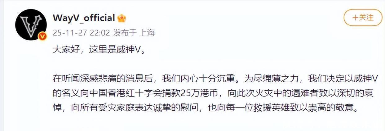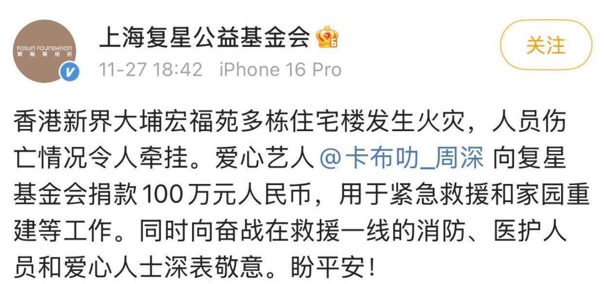 11日清晨,一则令人心碎的消息传遍全国:香港新界大埔突发重大火灾,截至上时,已造人遇难、76人受伤。这场突如其来的灾难,不仅吞噬了近百条鲜活生命,更撕裂了无数家庭的幸福日常。面对如此惨痛的悲剧,整个社会为之震动,而在这片阴霾之下,一道道来自演艺圈的微光,正悄然汇聚成希望的暖流。
