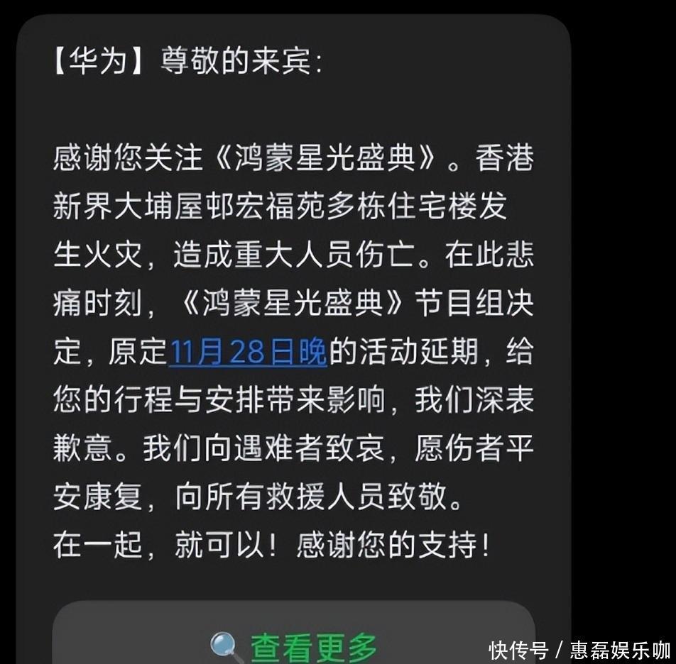 值得一提的是,原定近期举办的“鸿蒙星光盛典”——这场集结了易烊千玺、黄渤、刘欢、容祖儿、梁咏琪、任嘉伦等数十位顶流的央视大型晚会——也宣布延期。